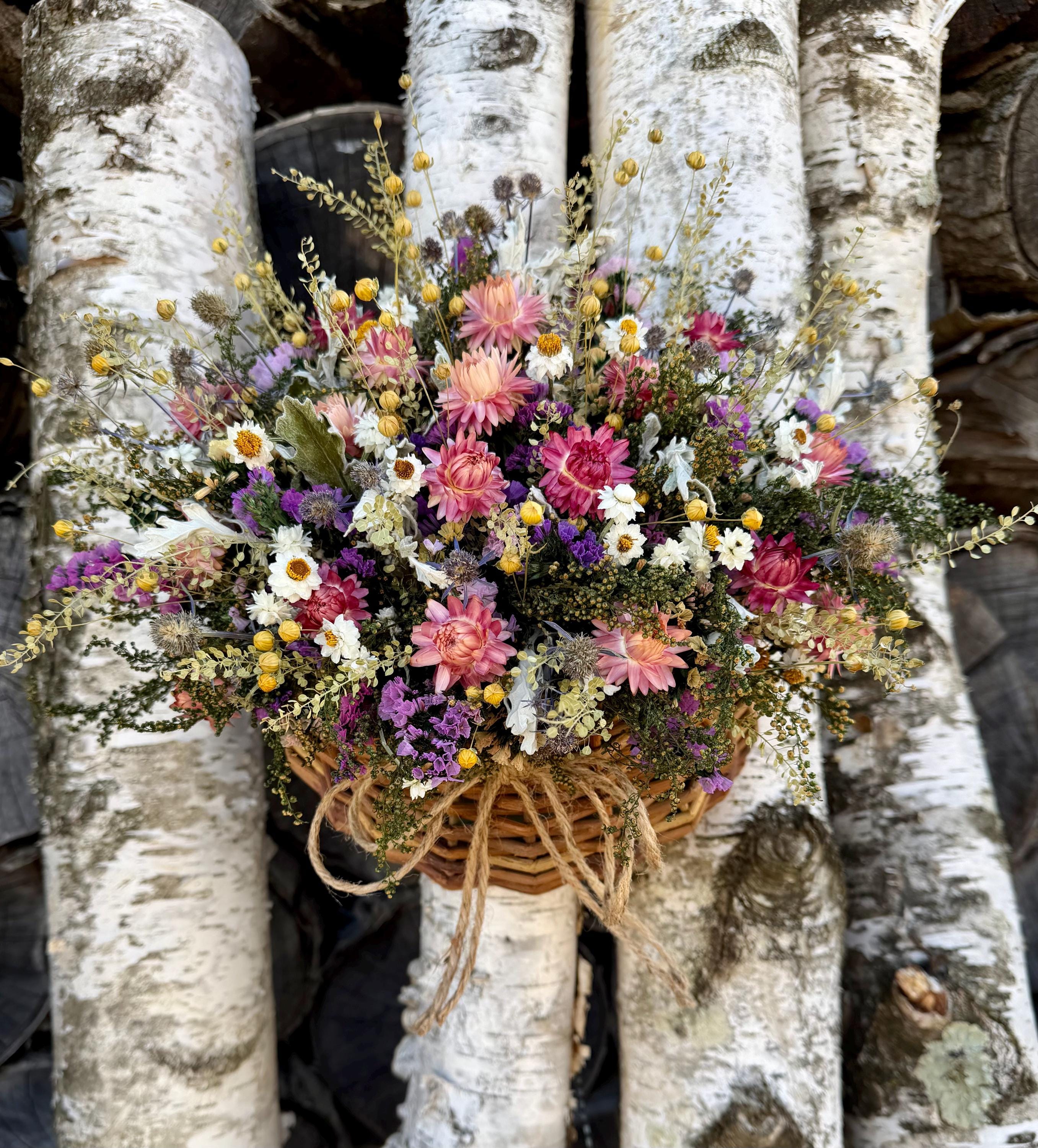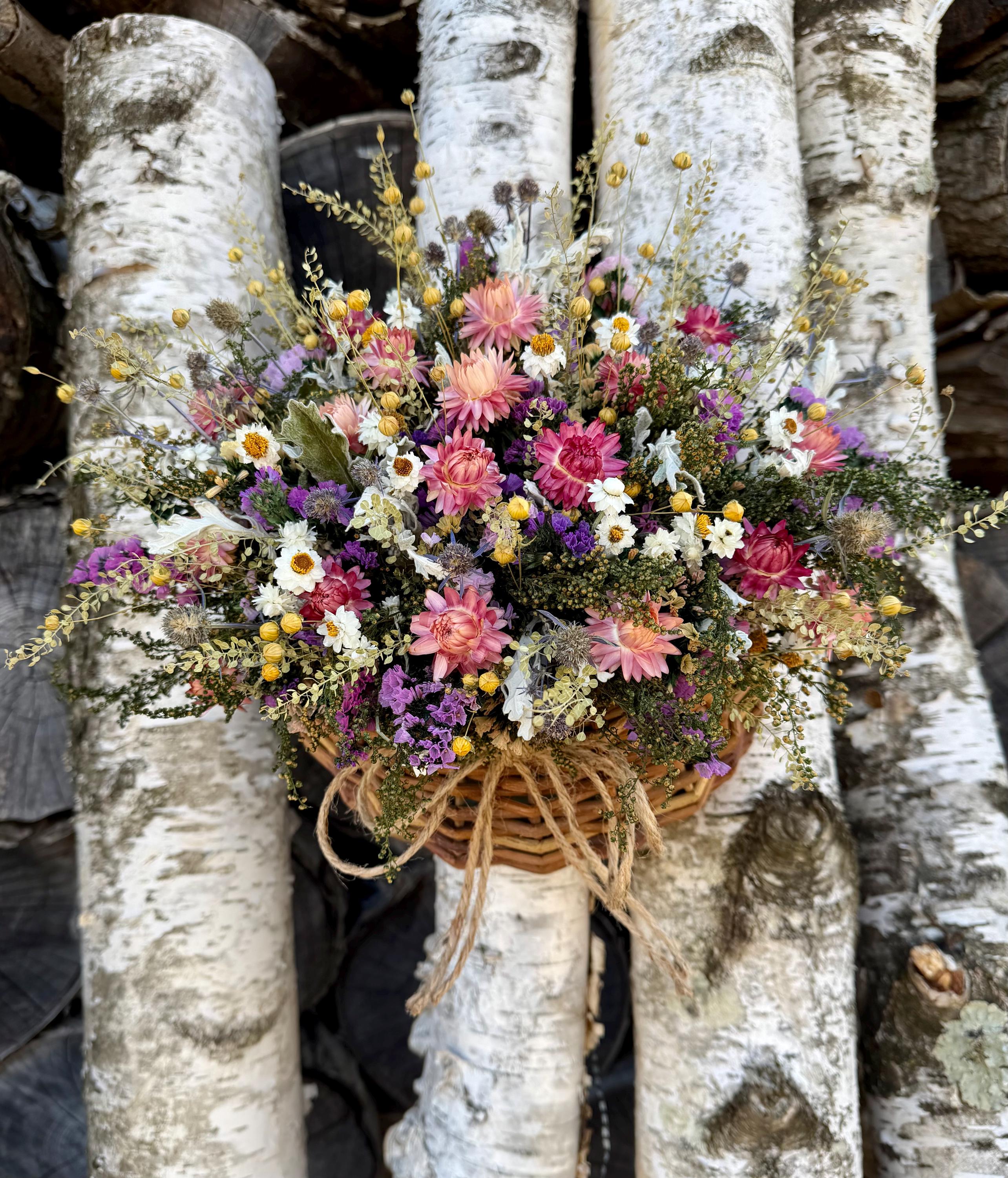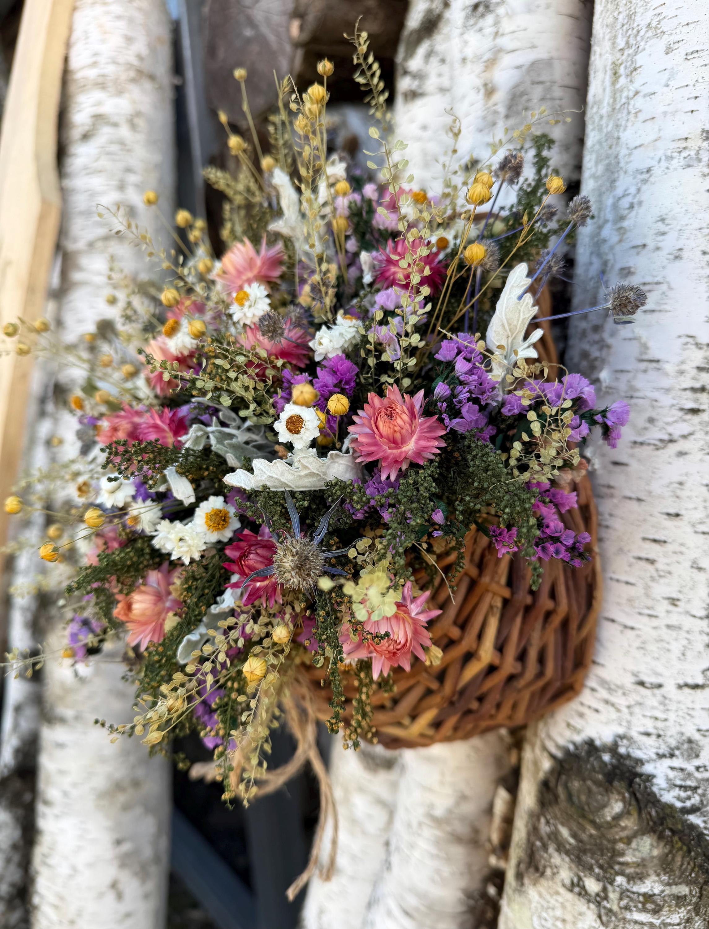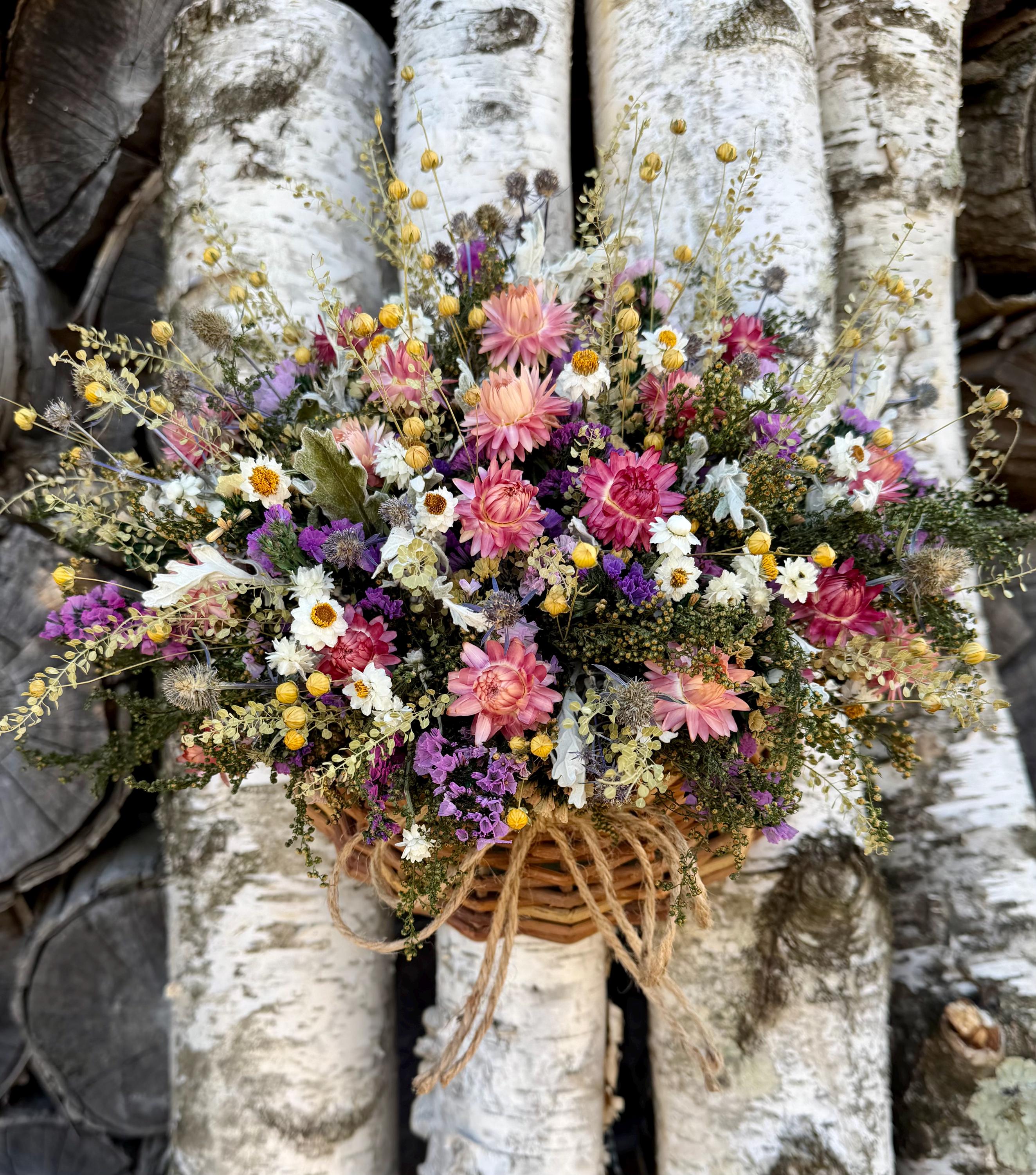 Dried Flower filled Wall Basket, Dry Flowers, Wicker Wall Basket